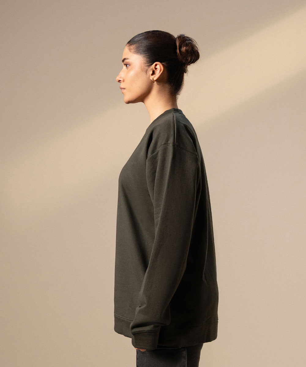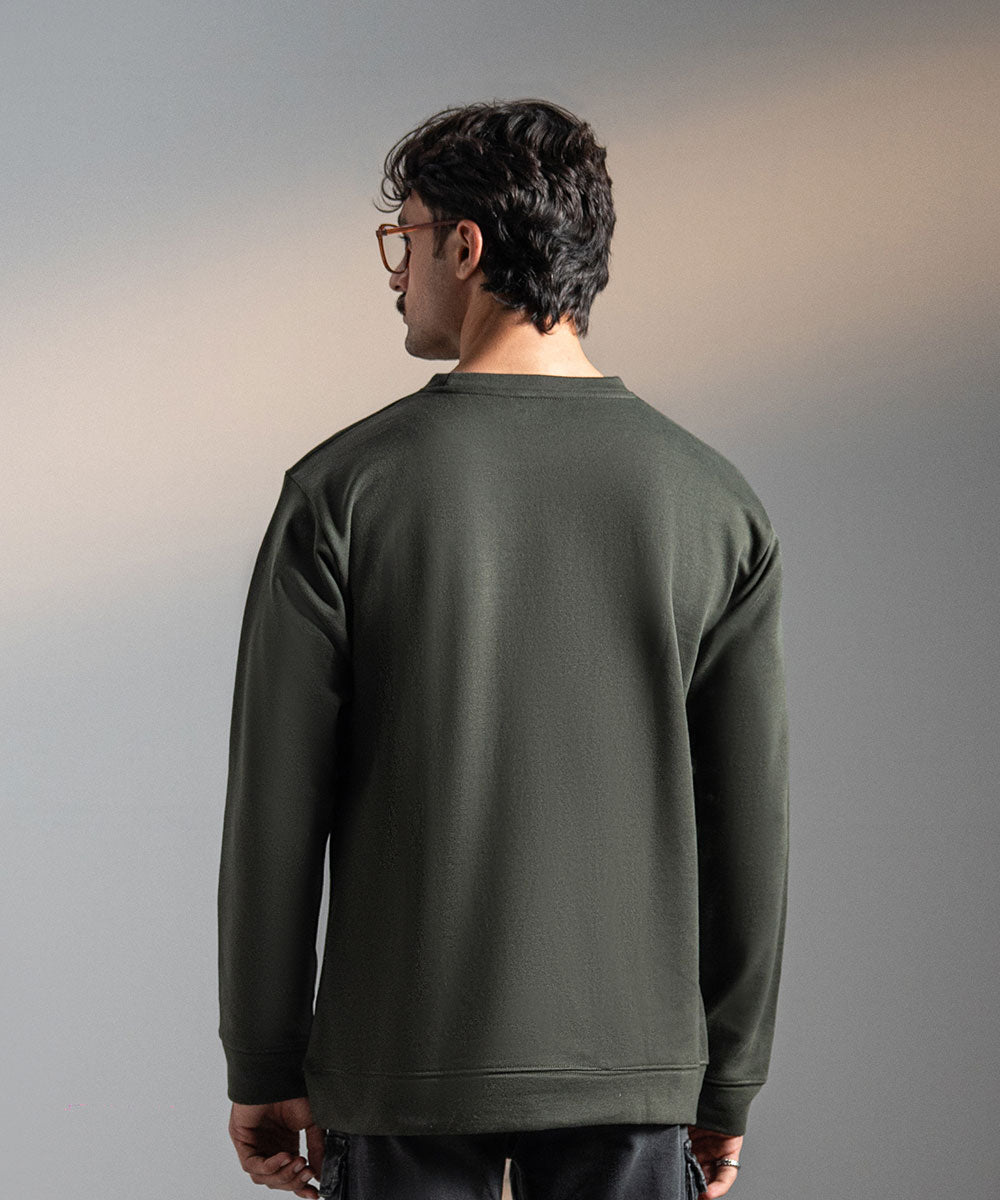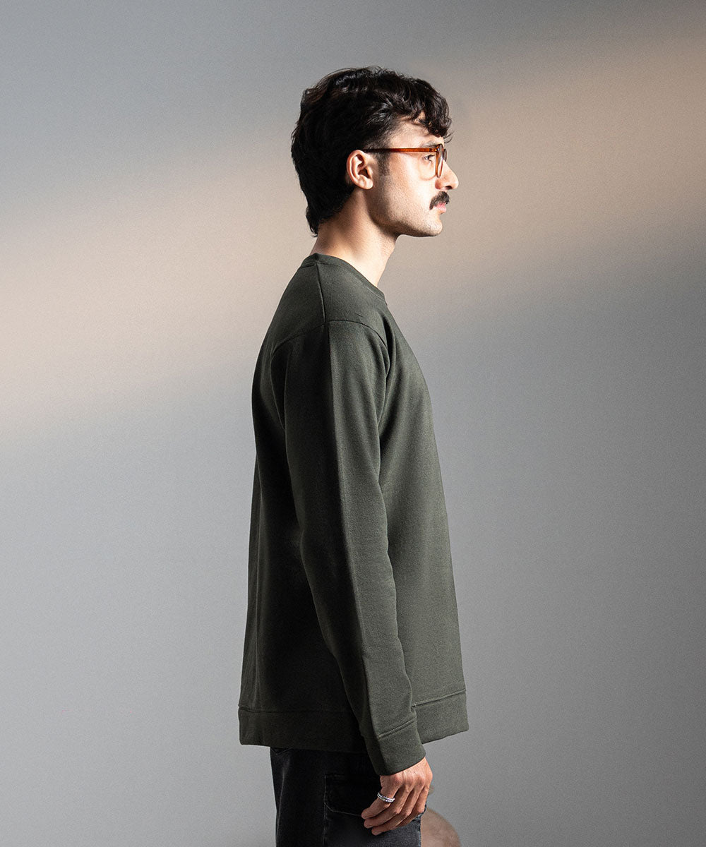 Design details: Minimalist bottle green sweatshirt crafted for everyday wear, with durable seams and soft fleece.