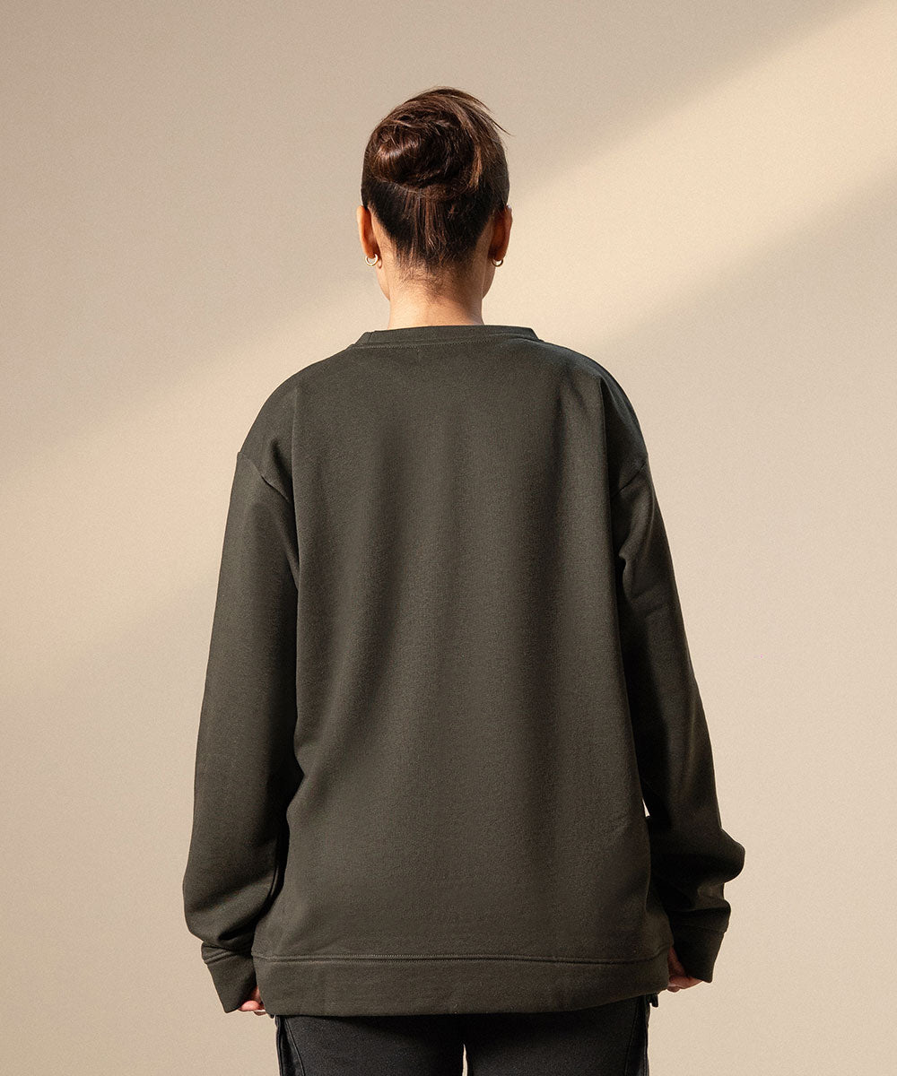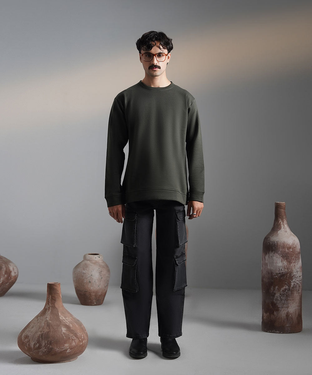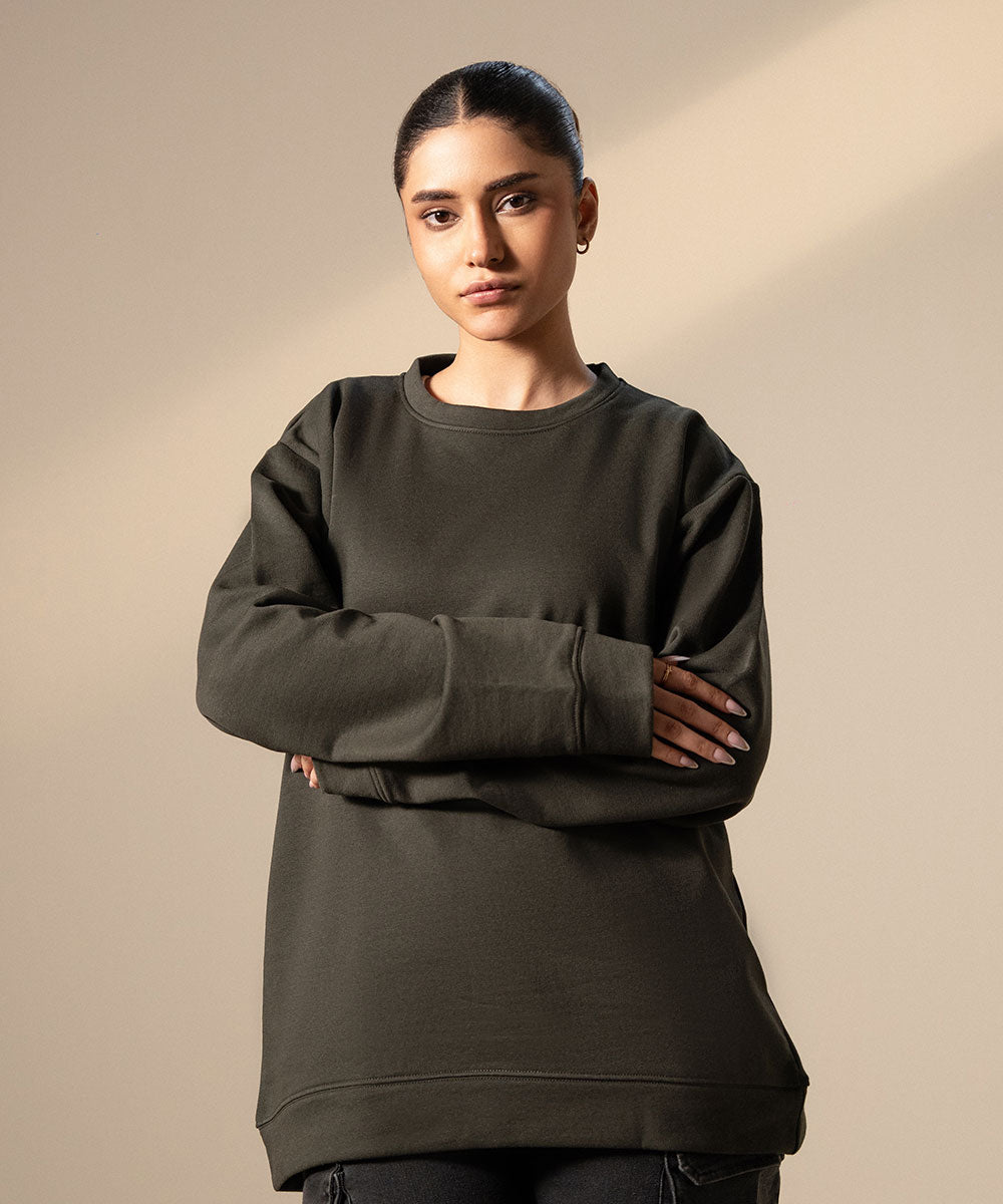 Design details: Minimalist bottle green sweatshirt crafted for everyday wear, with durable seams and soft fleece.