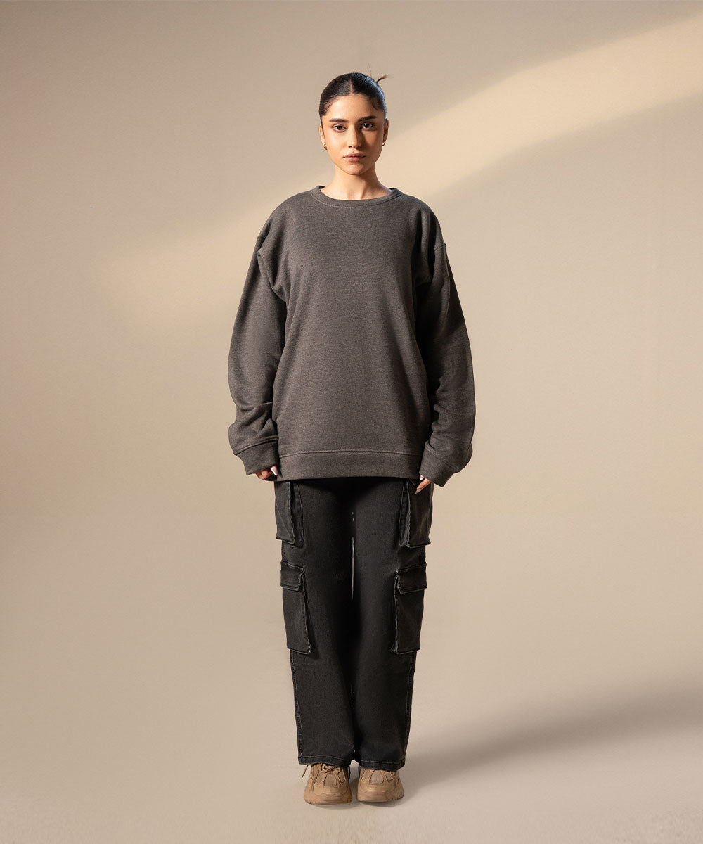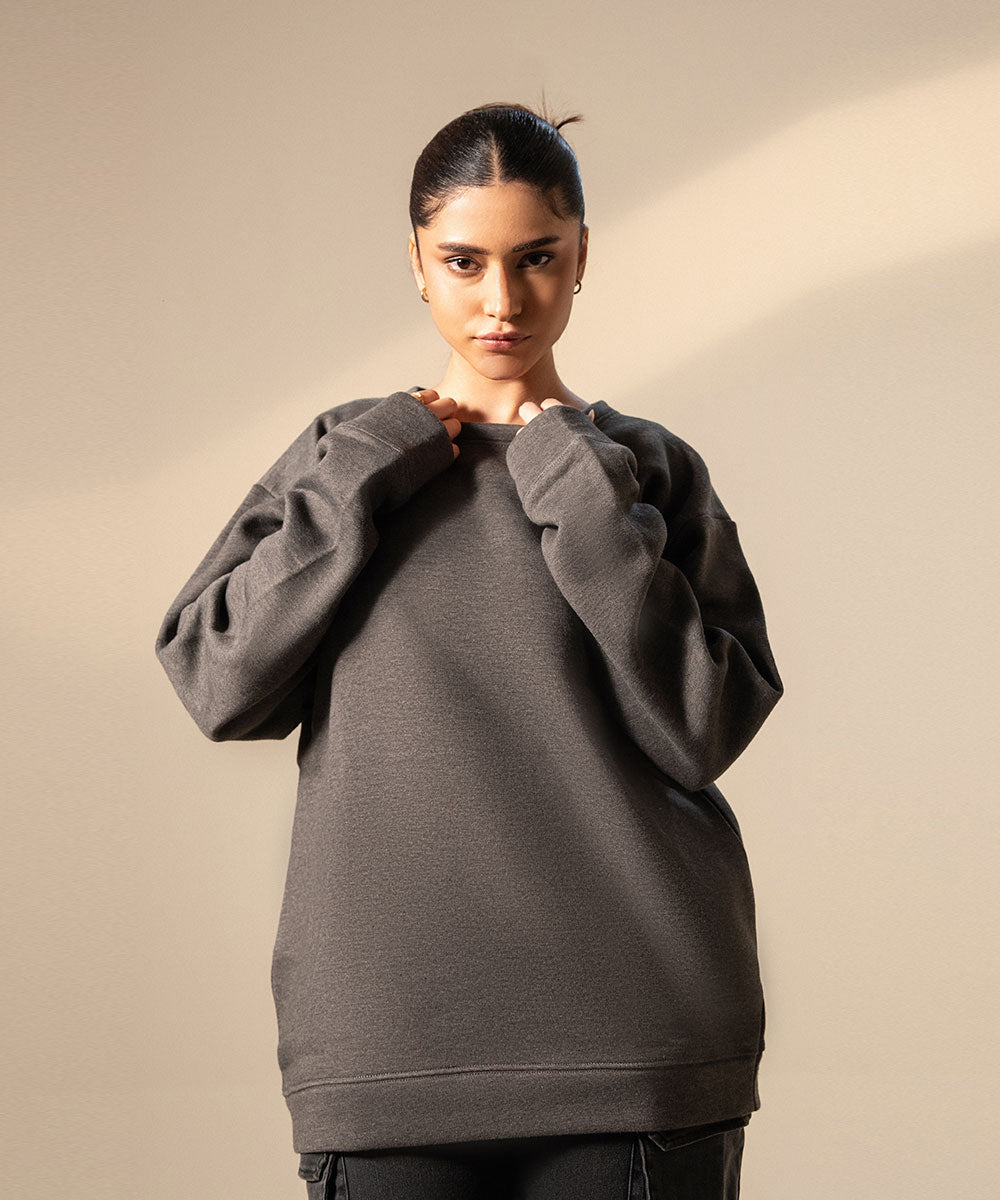 Design details: Minimalist charcoal sweatshirt crafted for everyday wear, with durable seams and soft fleece lining.