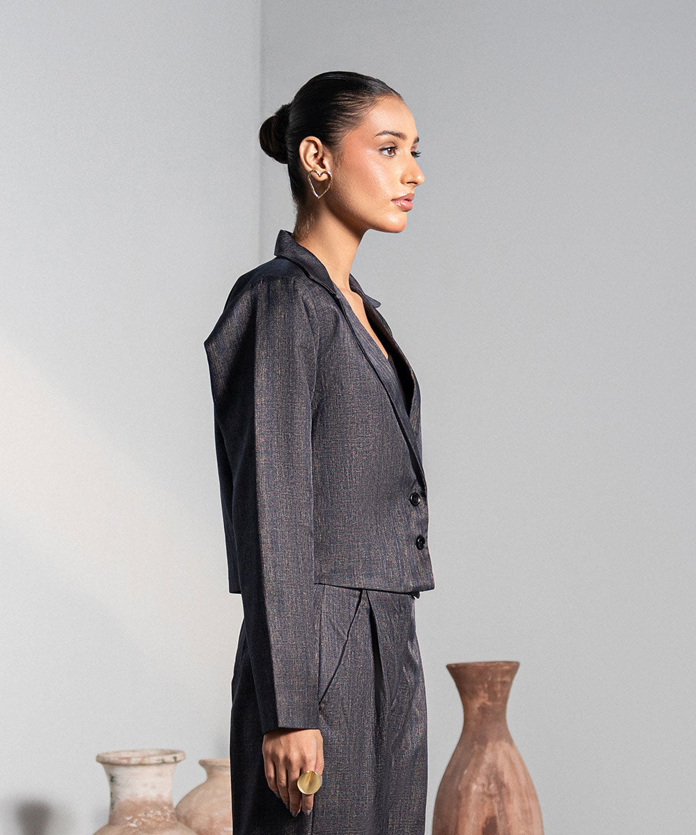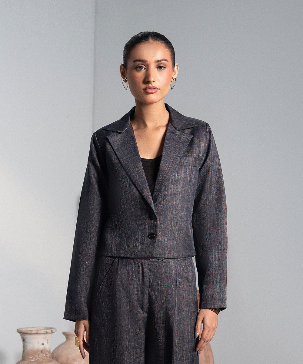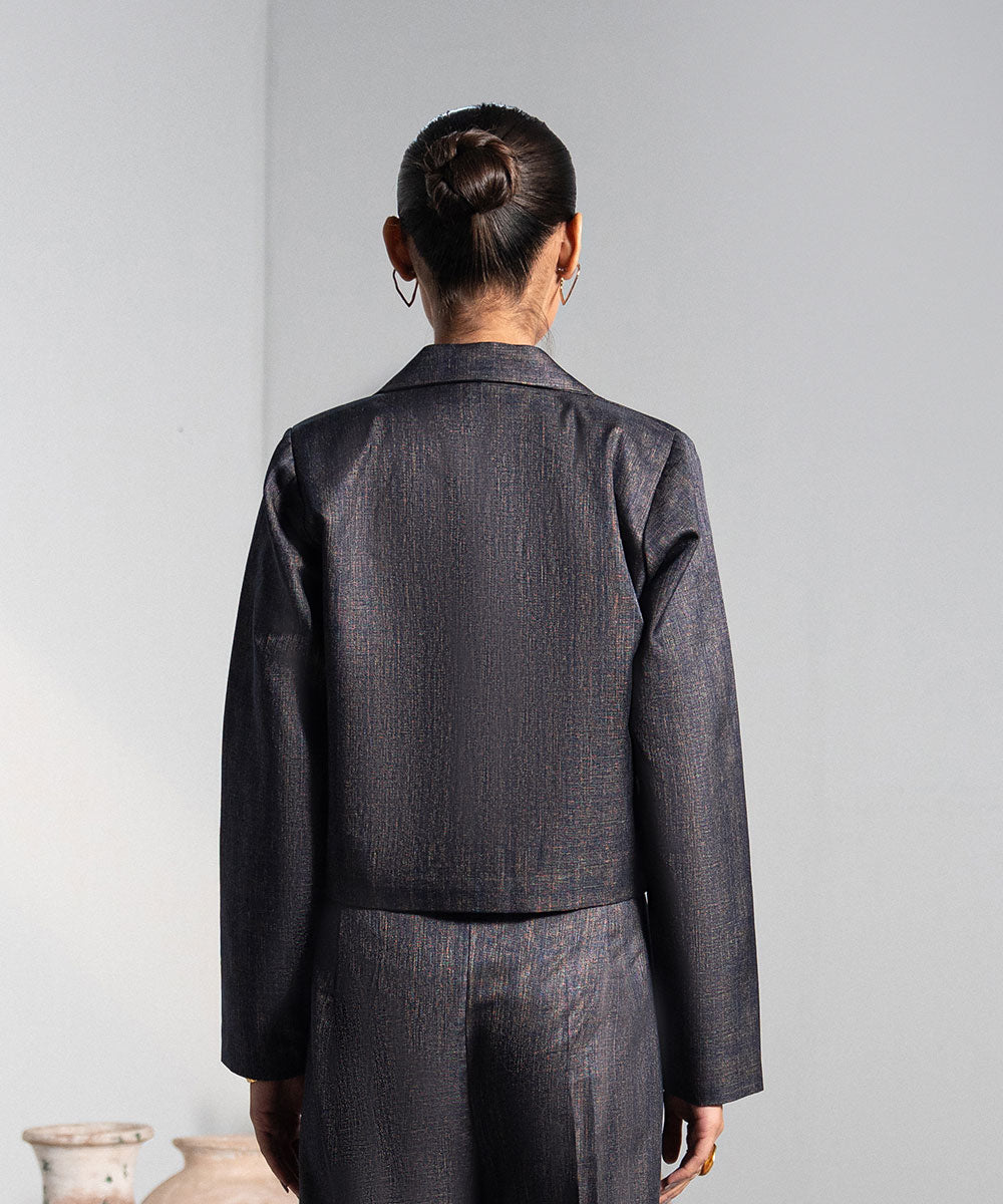 Design details: Meridian short coat crafted for a polished look, with tailored silhouette and clean finish.