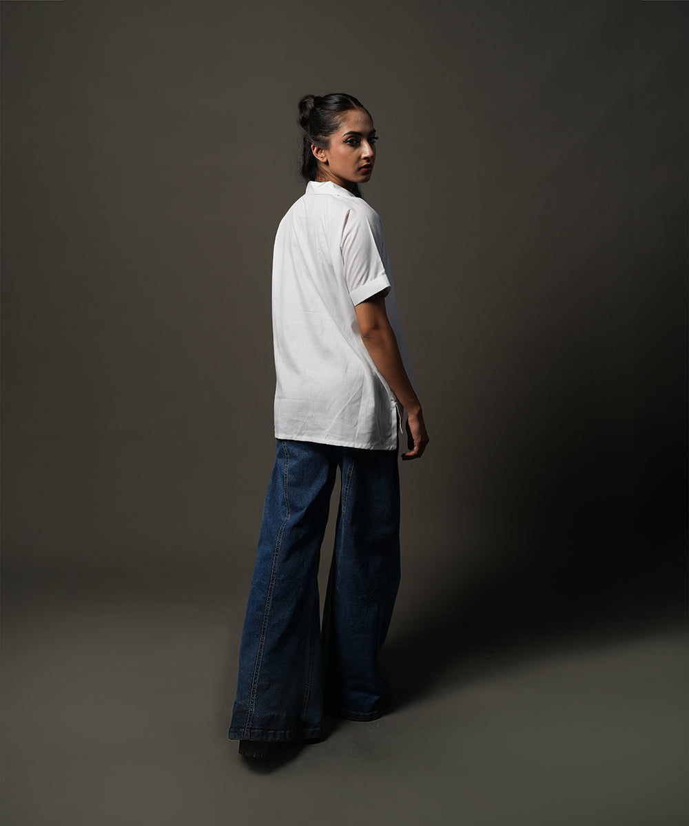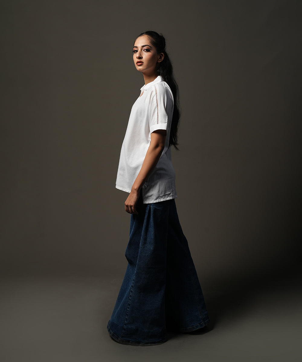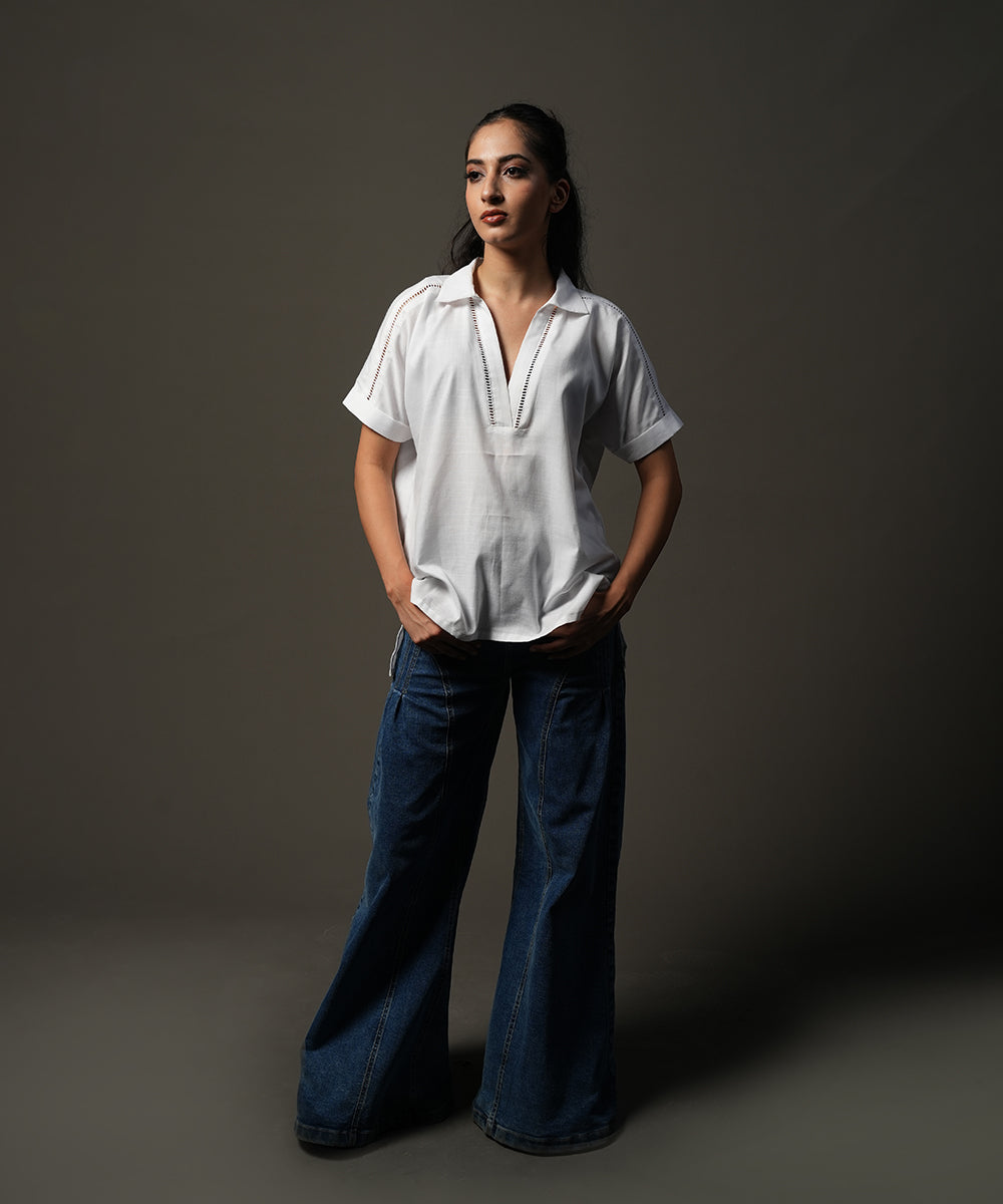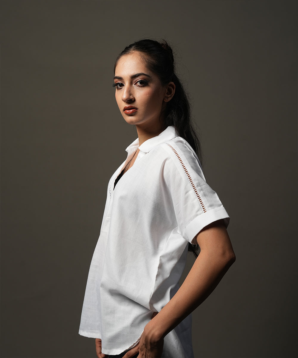 Design details: Crafted in textured slub cotton, this white lace-detailed top adds a refined touch to everyday wear.