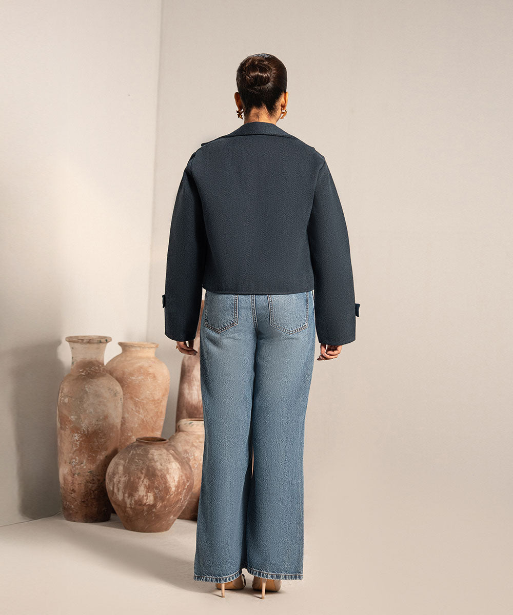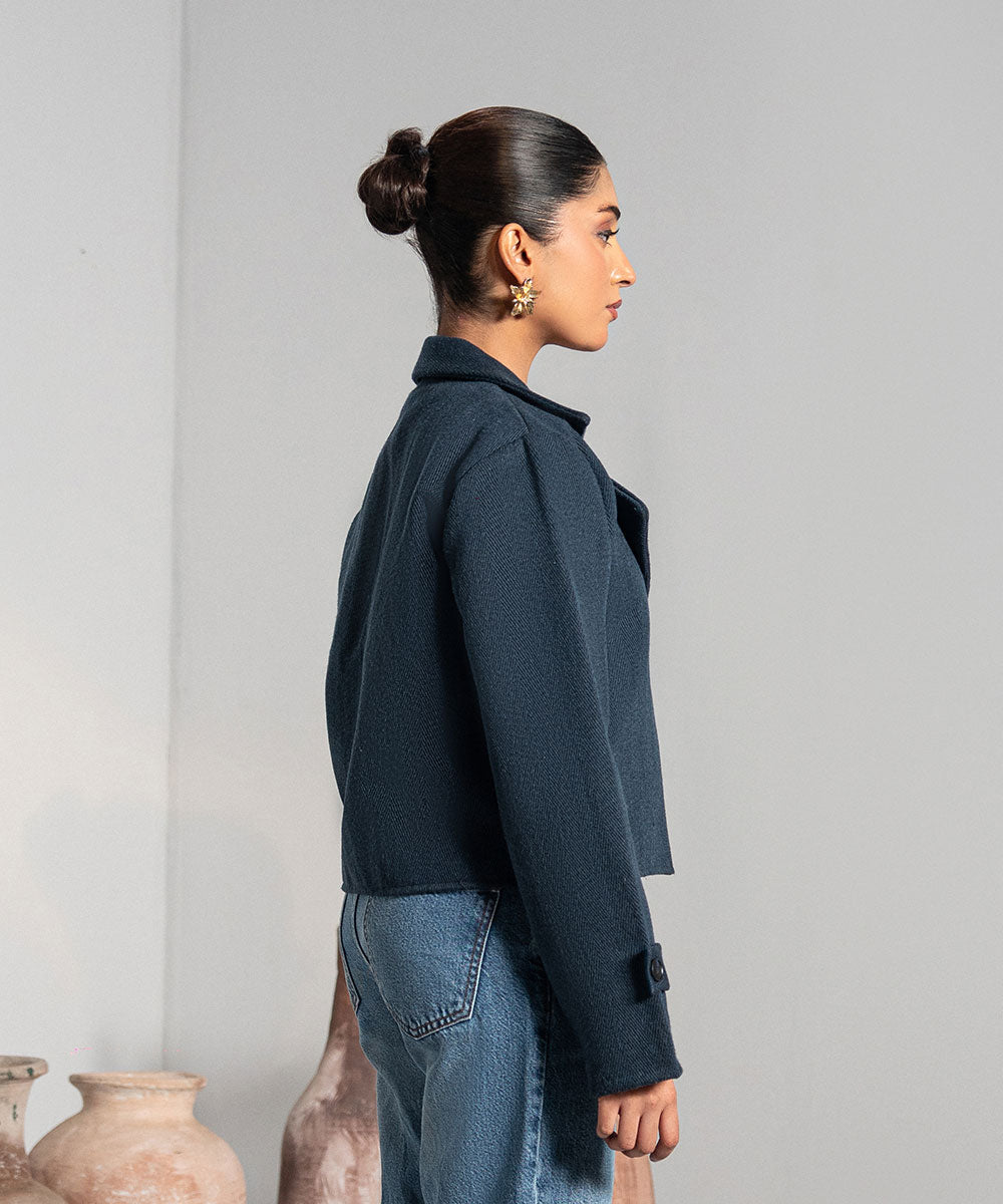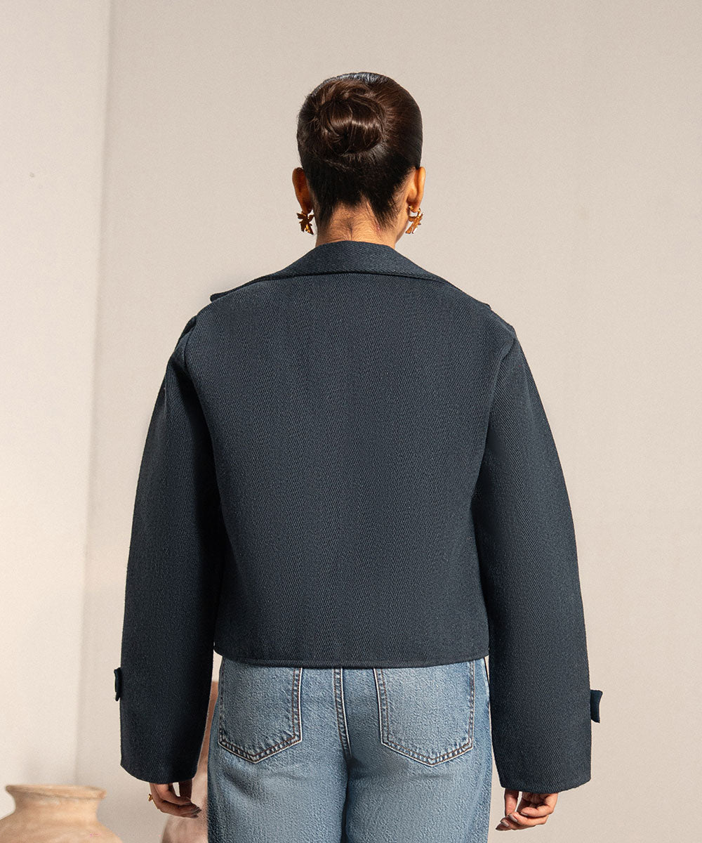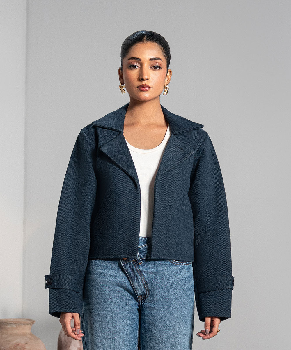 Design details: Classic Midnight Fold men’s coat crafted in rich blue wool with structured, polished style.