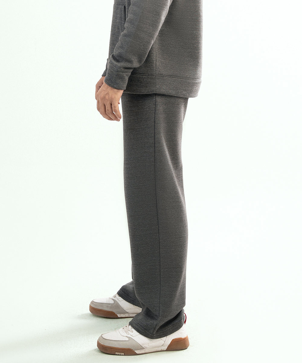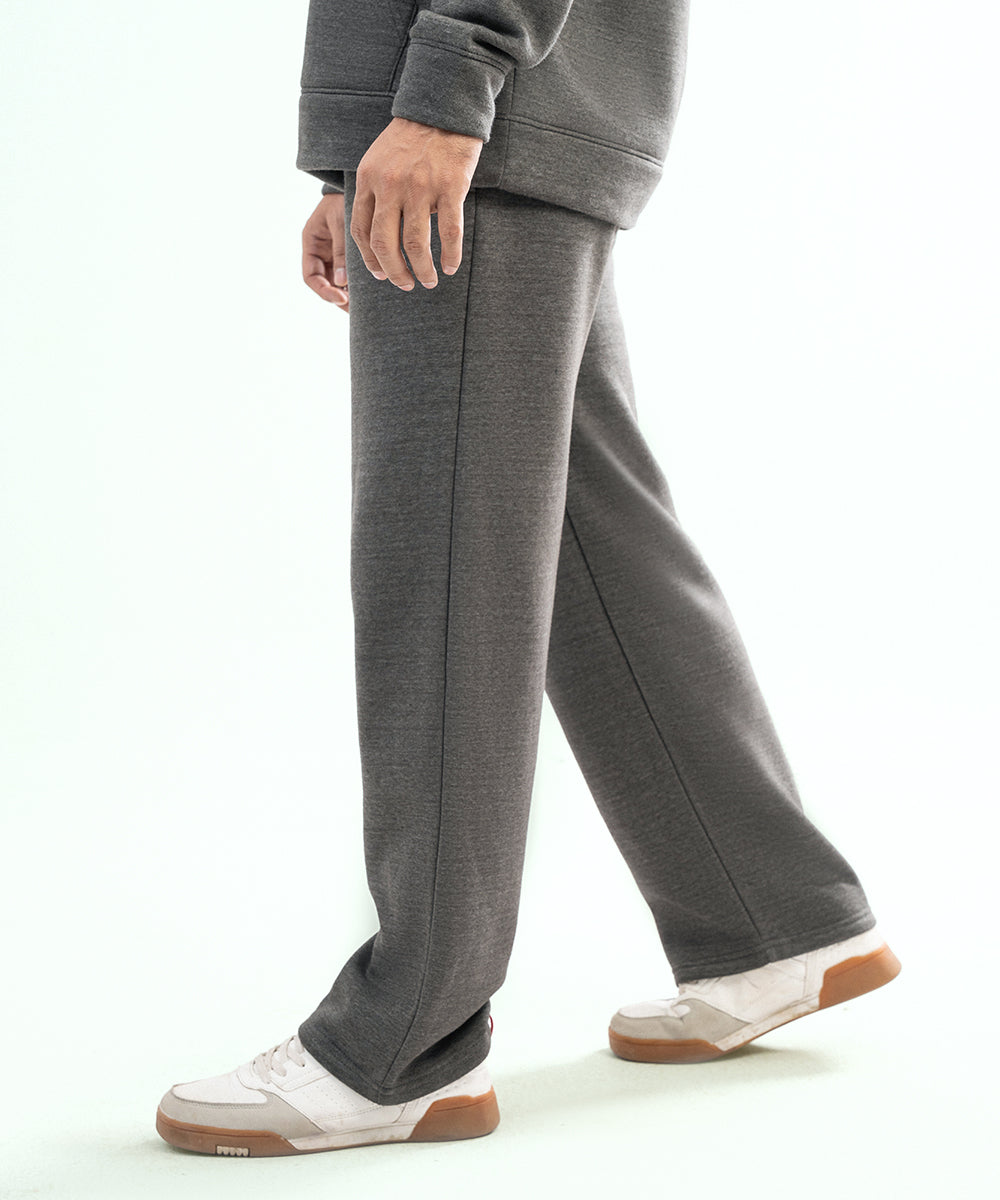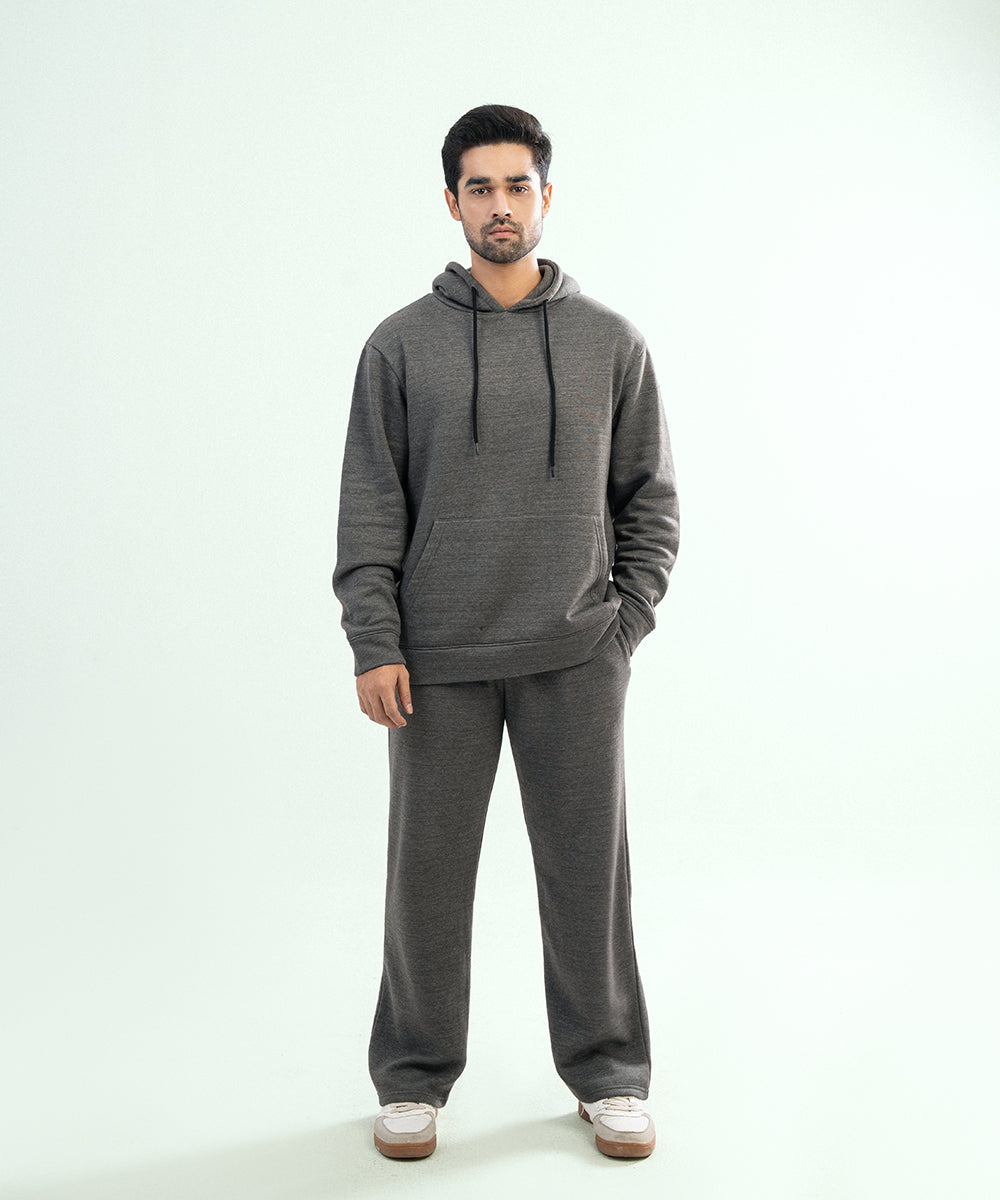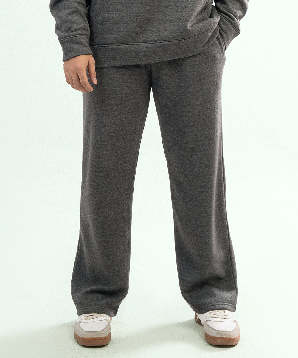 Design details: Charcoal fleece trousers with a relaxed fit and sleek minimal design offering cozy warmth and effortless everyday versatility.