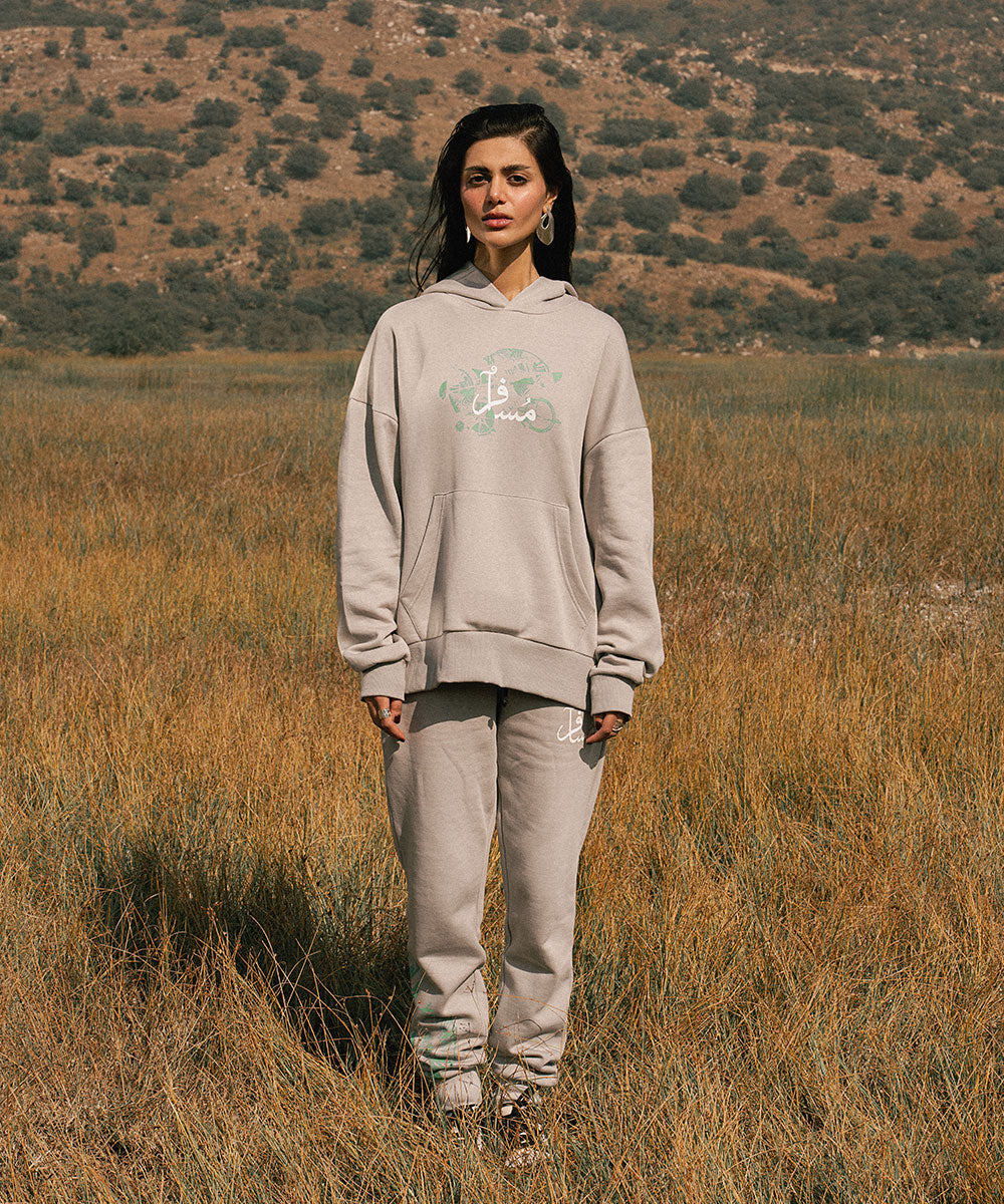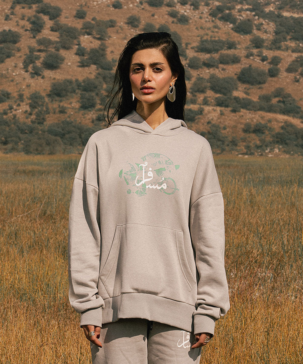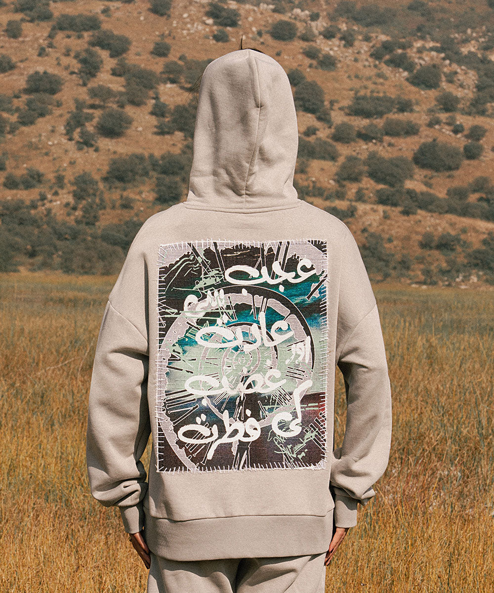 Design details: This gray hoodie features glowing neon accents with clock imagery and urdu script.