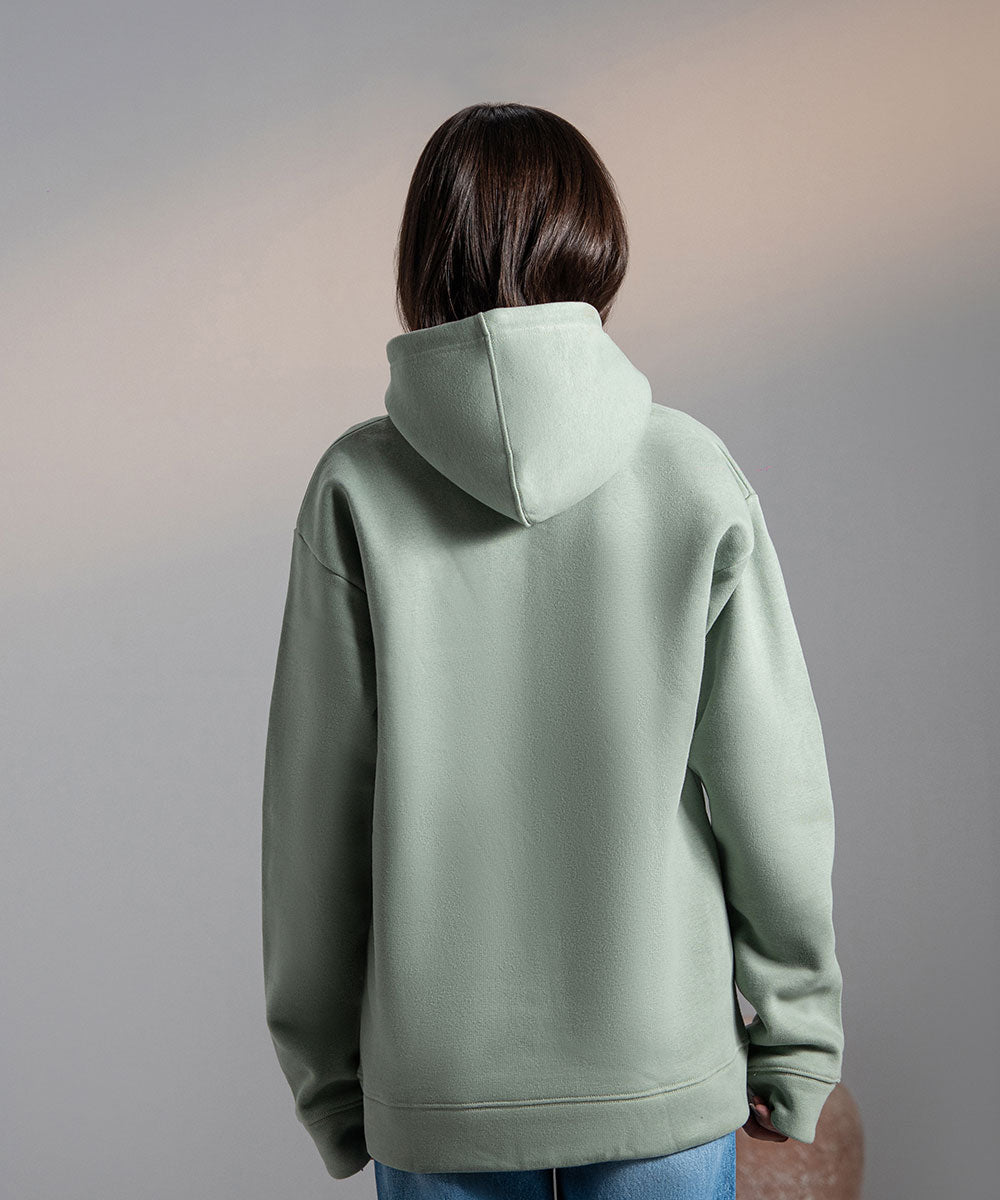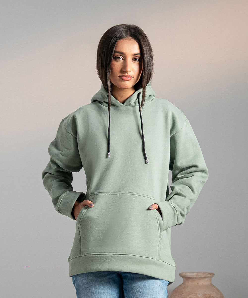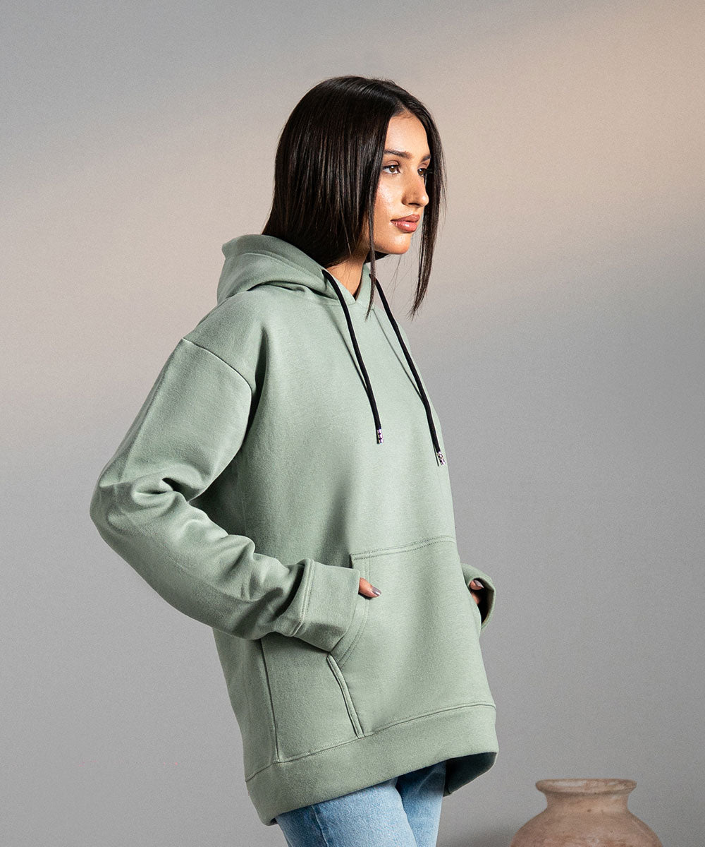 Design details: Lightweight muted sage hoodie crafted for comfort, with cozy hood and minimalist design details.
