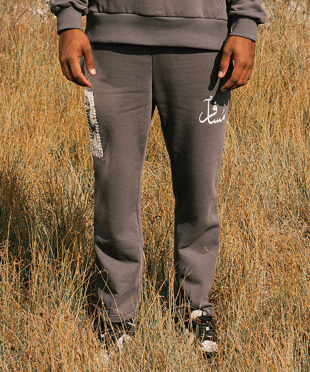 Design details: Designed with traveller's spirit in mind, these sweatpants carry abstract prints and textured elements that echo movement, time, and emotional transitions. The soft fabric and tapered fit with drawstring adjustment adds comfort.