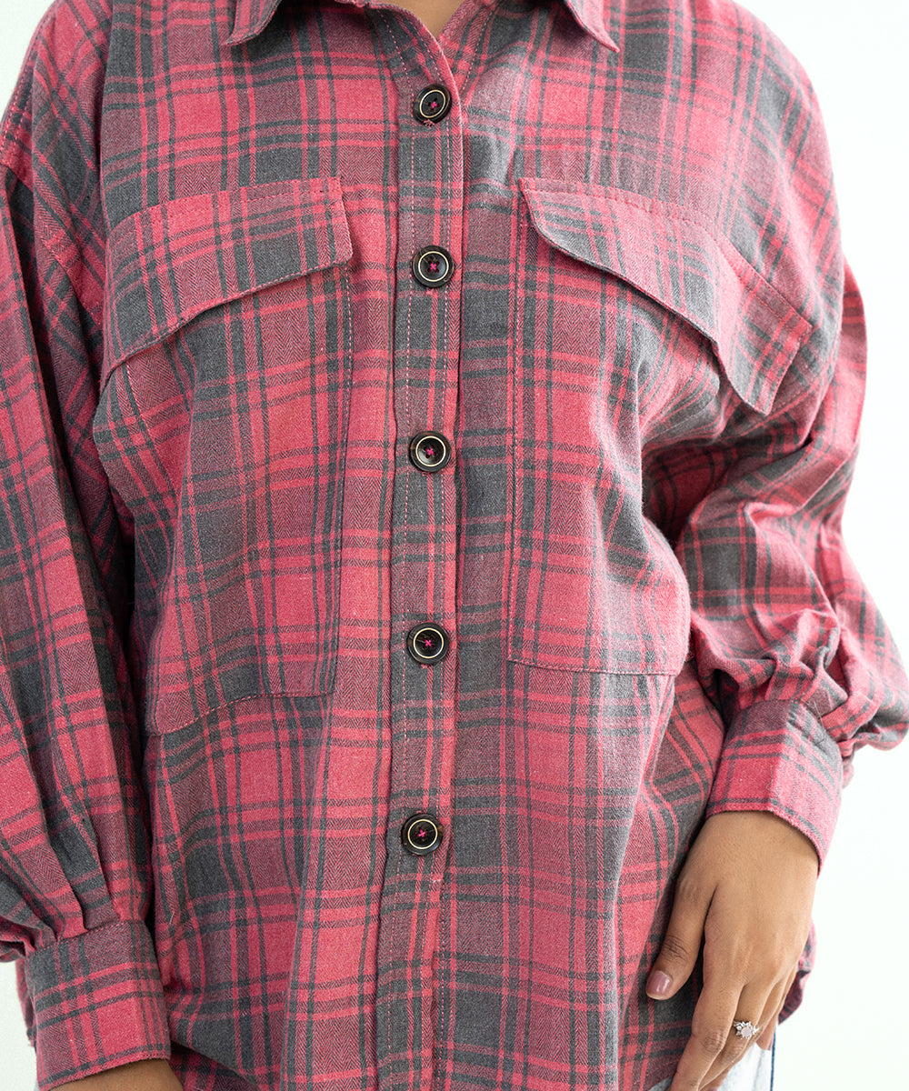 Featuring our statement-making oversized shirt, expertly crafted from warm and cozy flannel fabric. French sleeves, classic front buttoned closure, and a relaxed fit.
