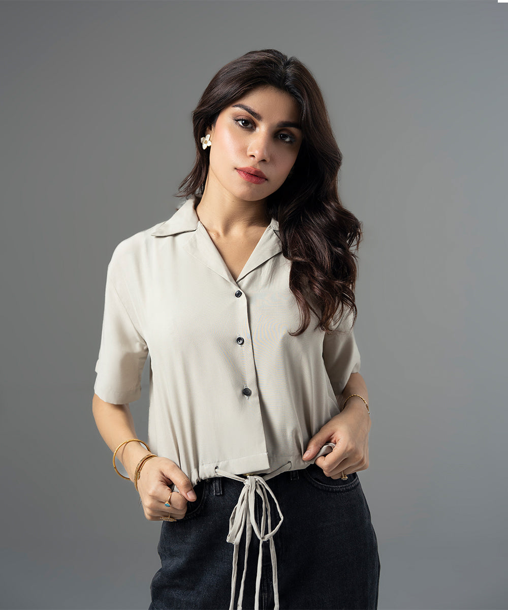 Design details: Lightweight and relaxed, this Cuban collar top adds charm with adjustable tie ends.