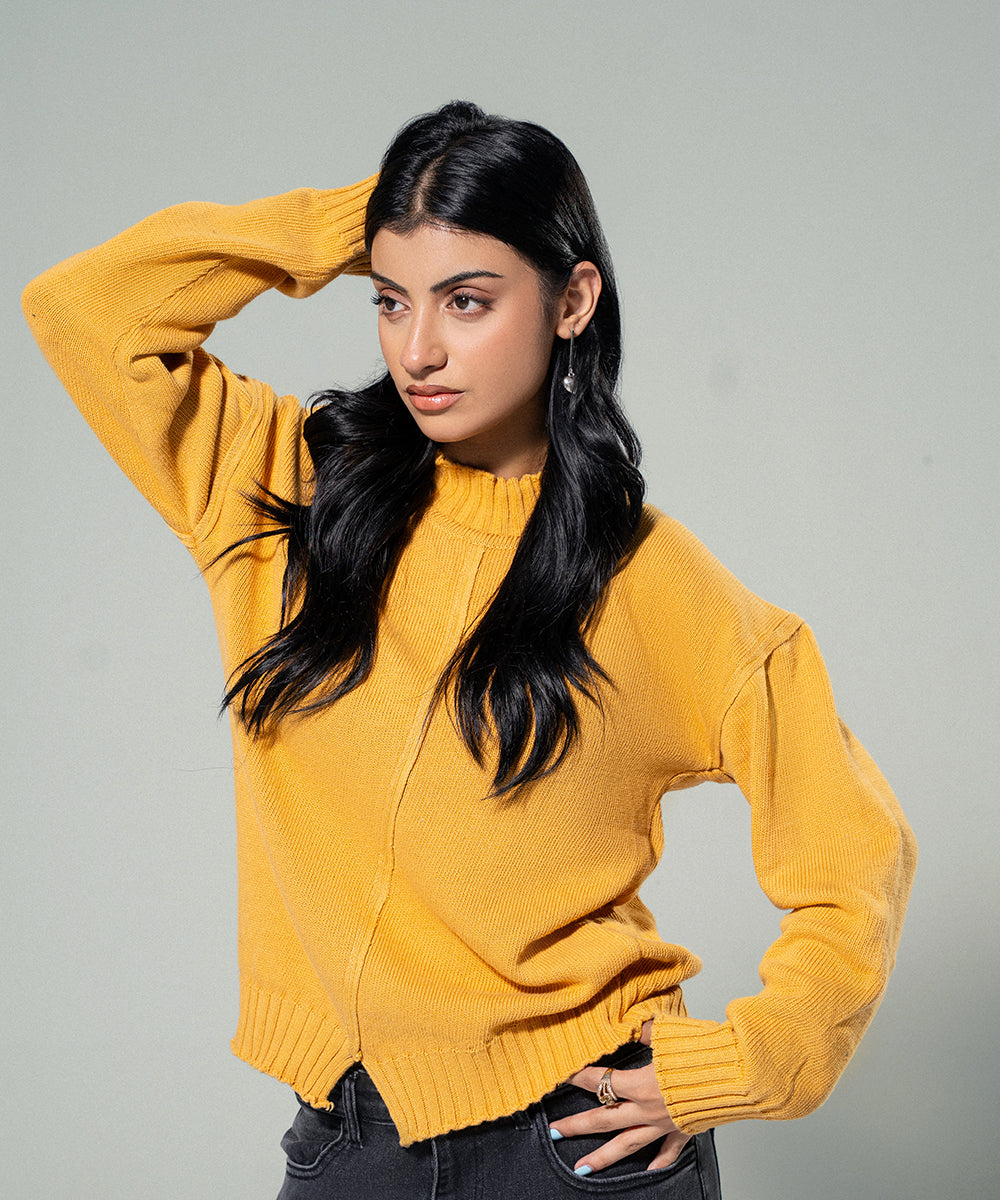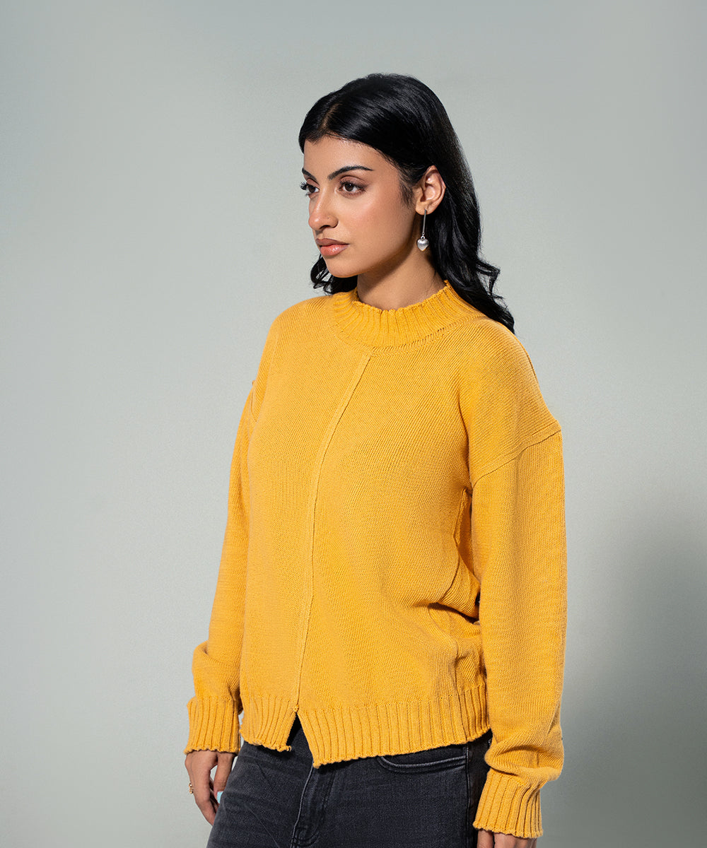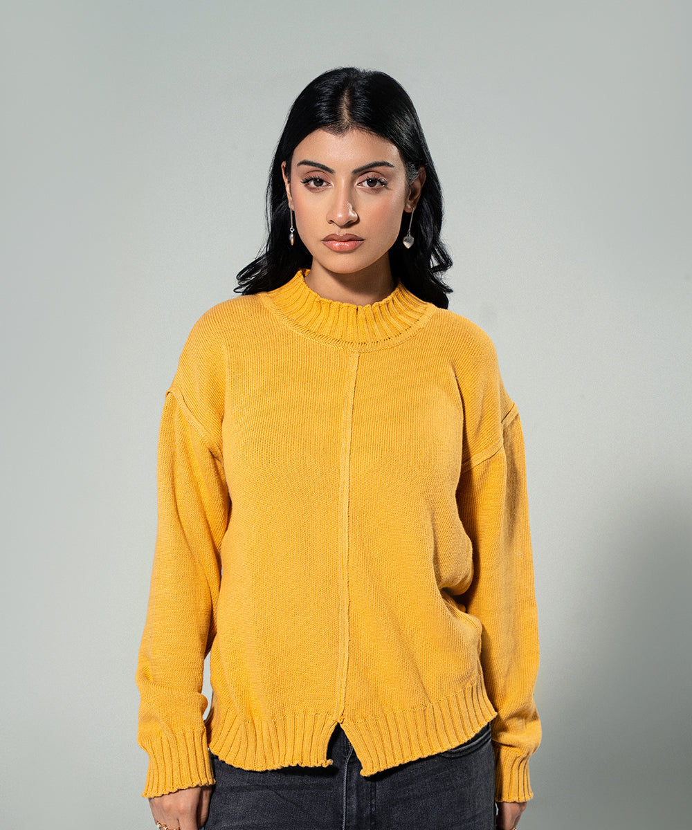 Design details: This lean look sweater features a modish pleated turtle neck, complemented by a front seam-line and subtle slit details that elevate its classy appearance.