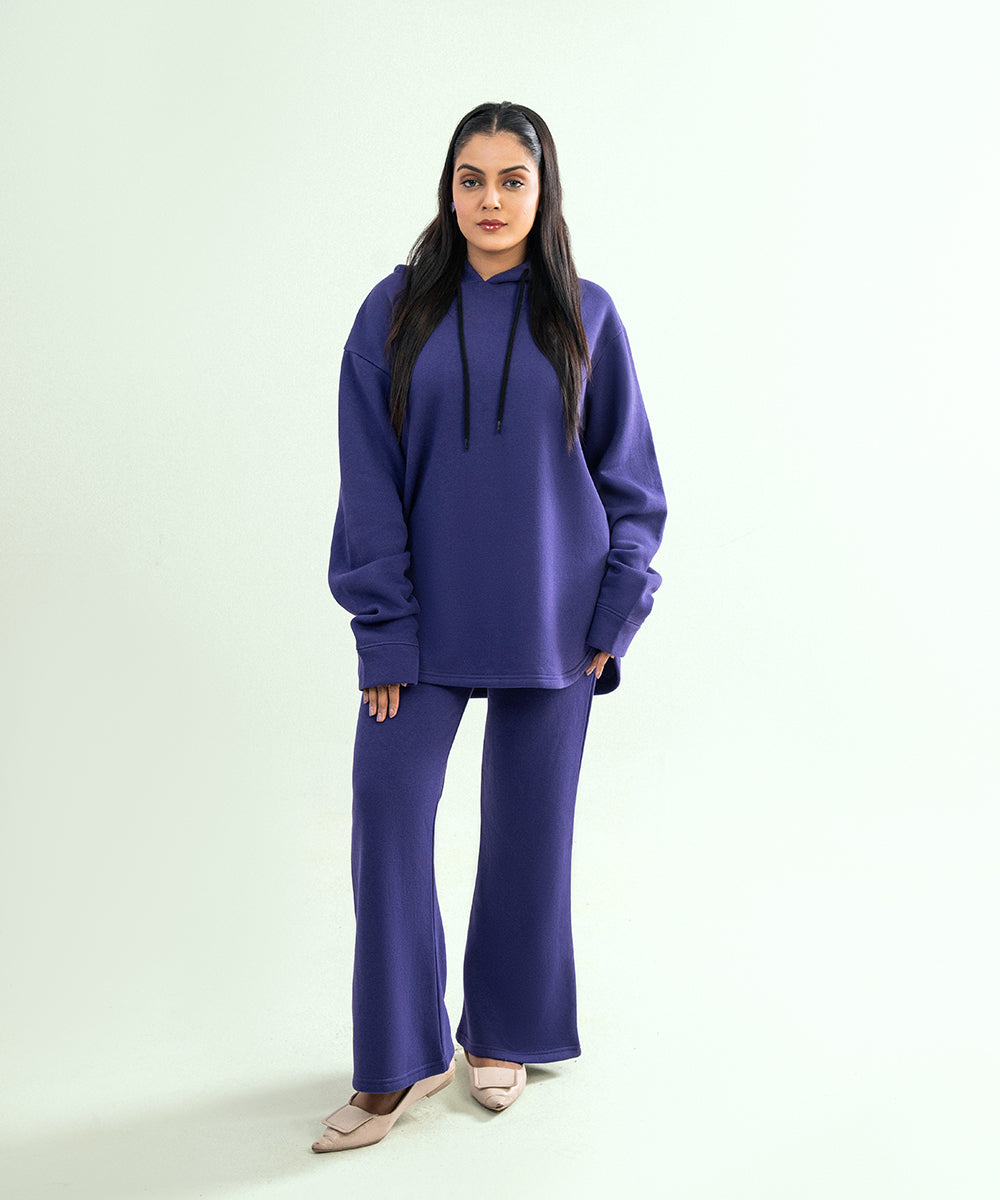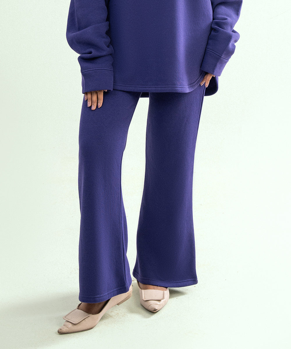 Design details: Purple fleece trousers with a relaxed fit and soft texture offering cozy warmth, bold style, and everyday comfort.