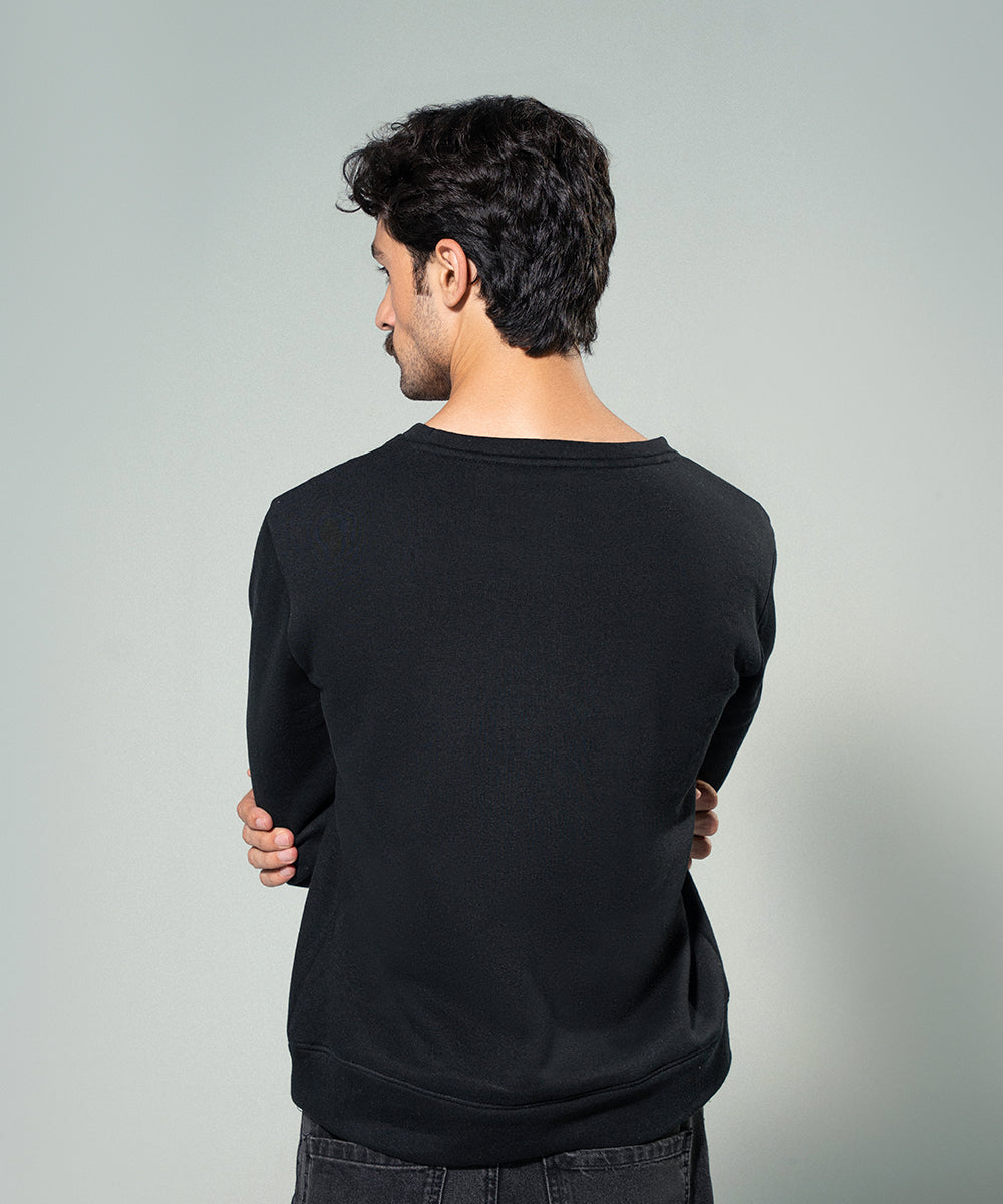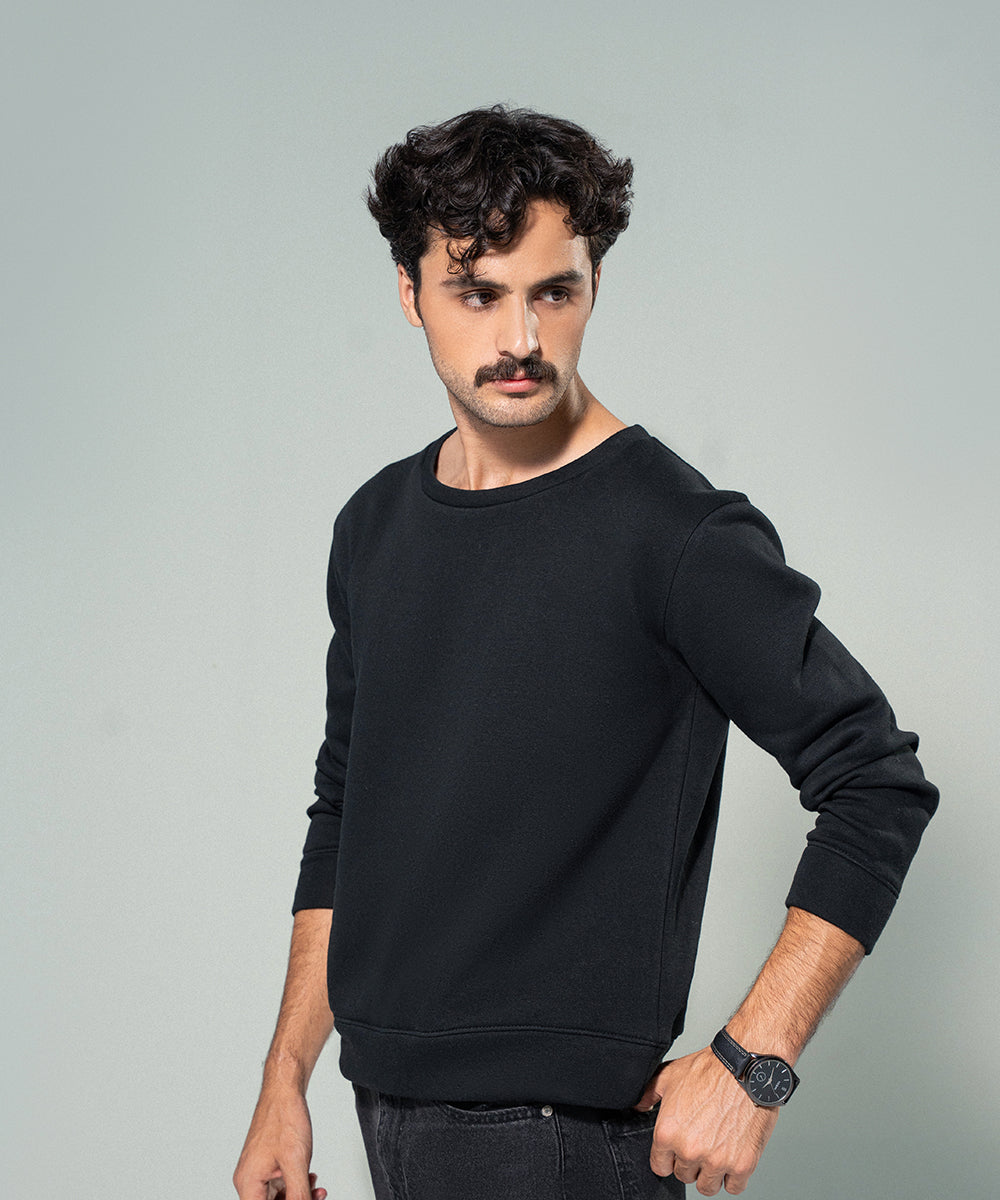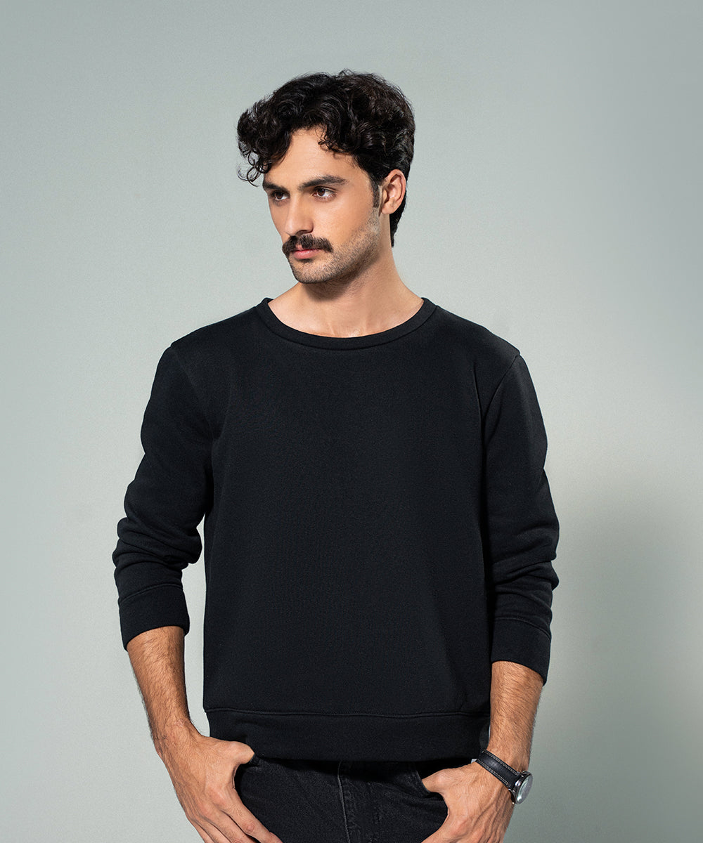 Design details: Classic black fleece sweatshirt with relaxed silhouette, and timeless minimal design perfect for effortless, everyday comfort.