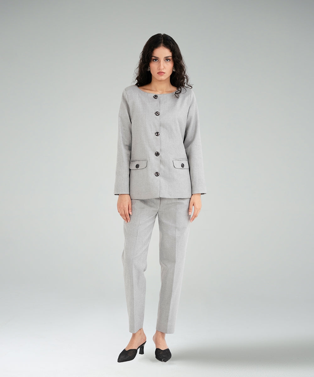 Design details: These grey straight-leg pants are the epitome of effortless sophistication.