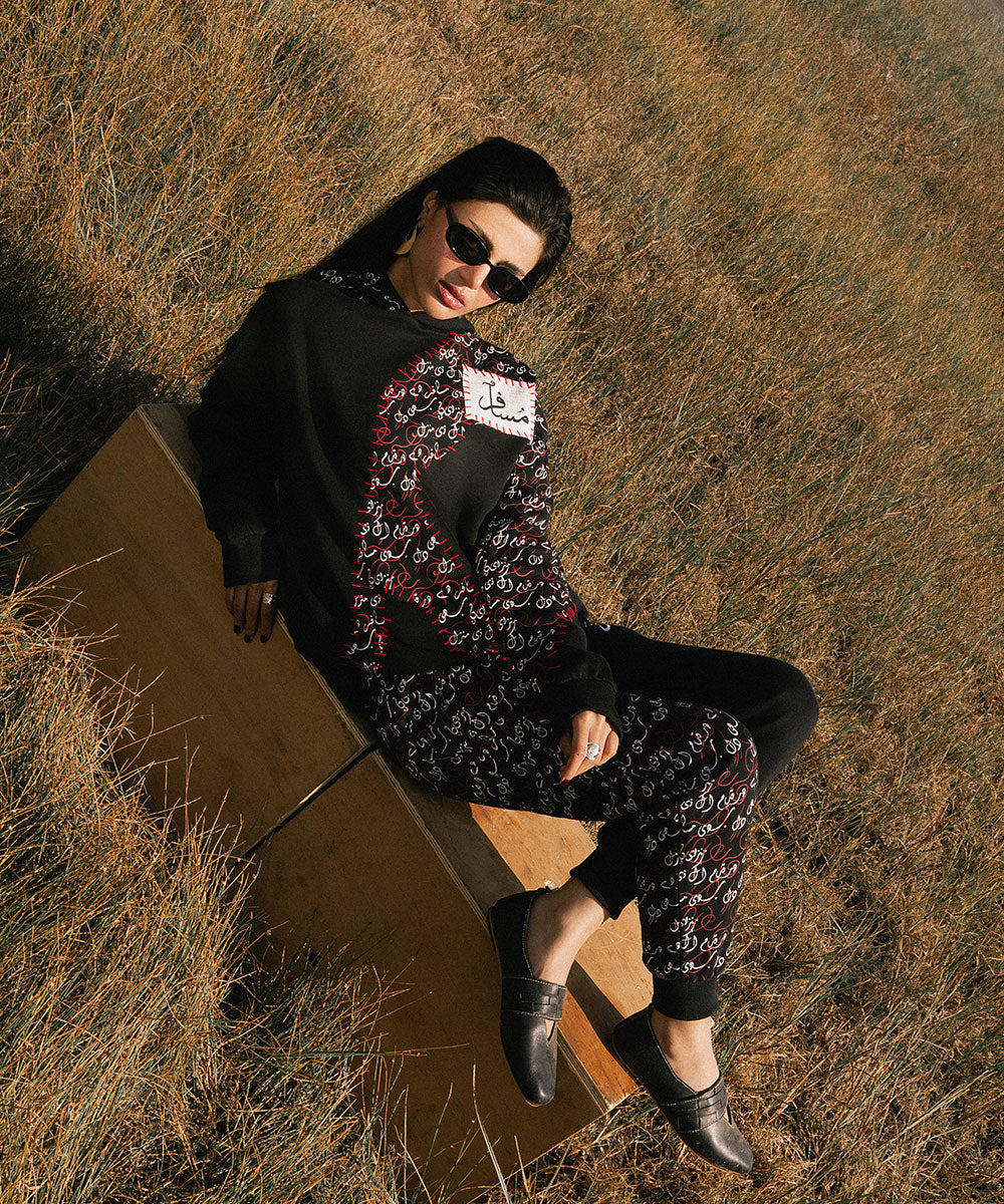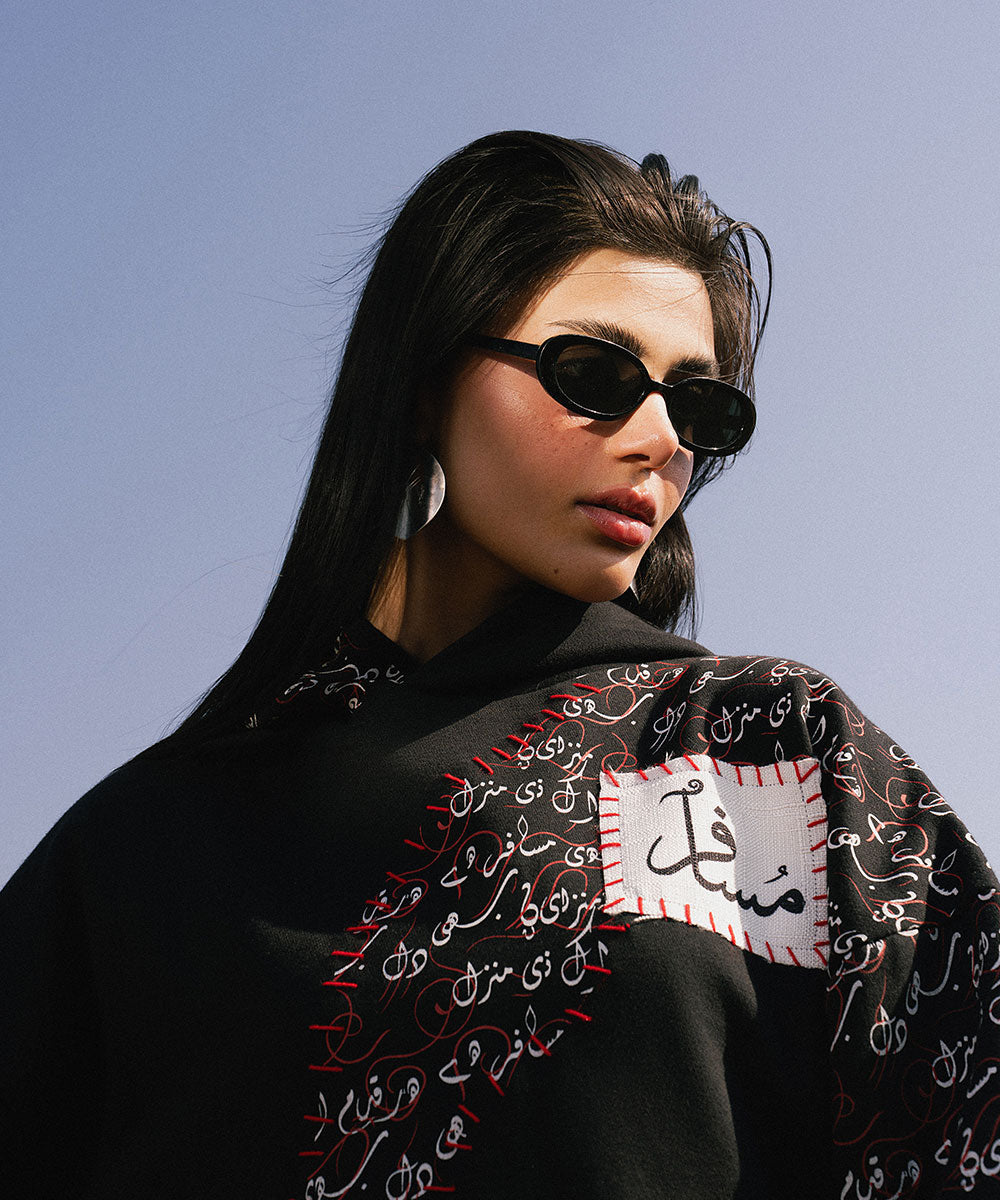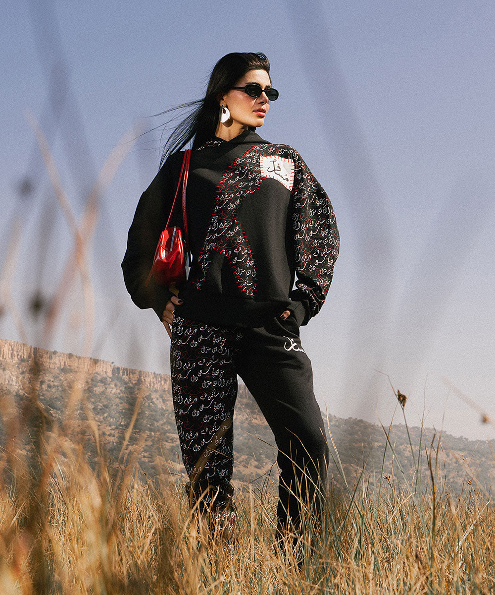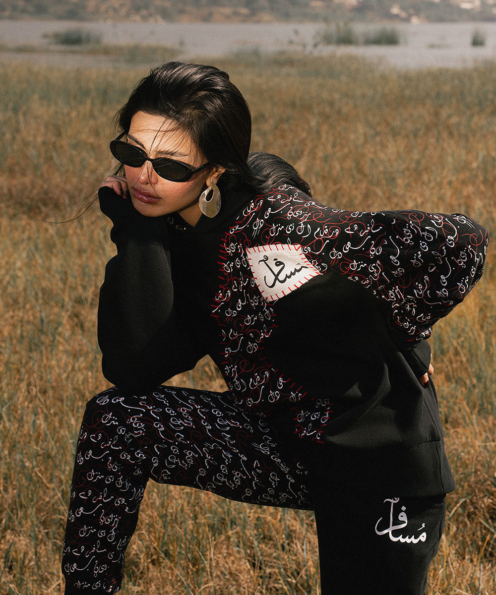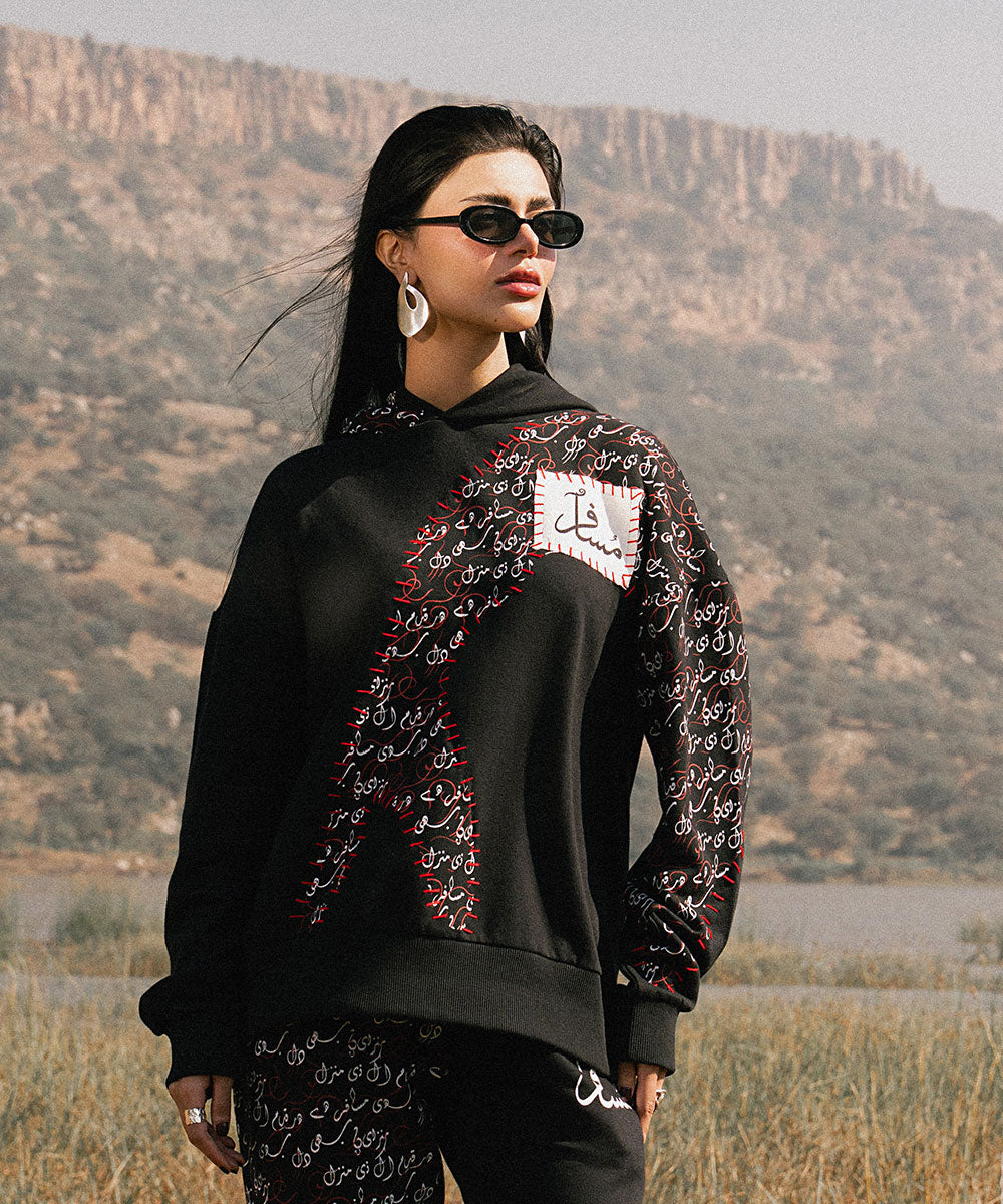 Design details: Soft black hoodie capturing the beauty of paths carved in silence and intention.