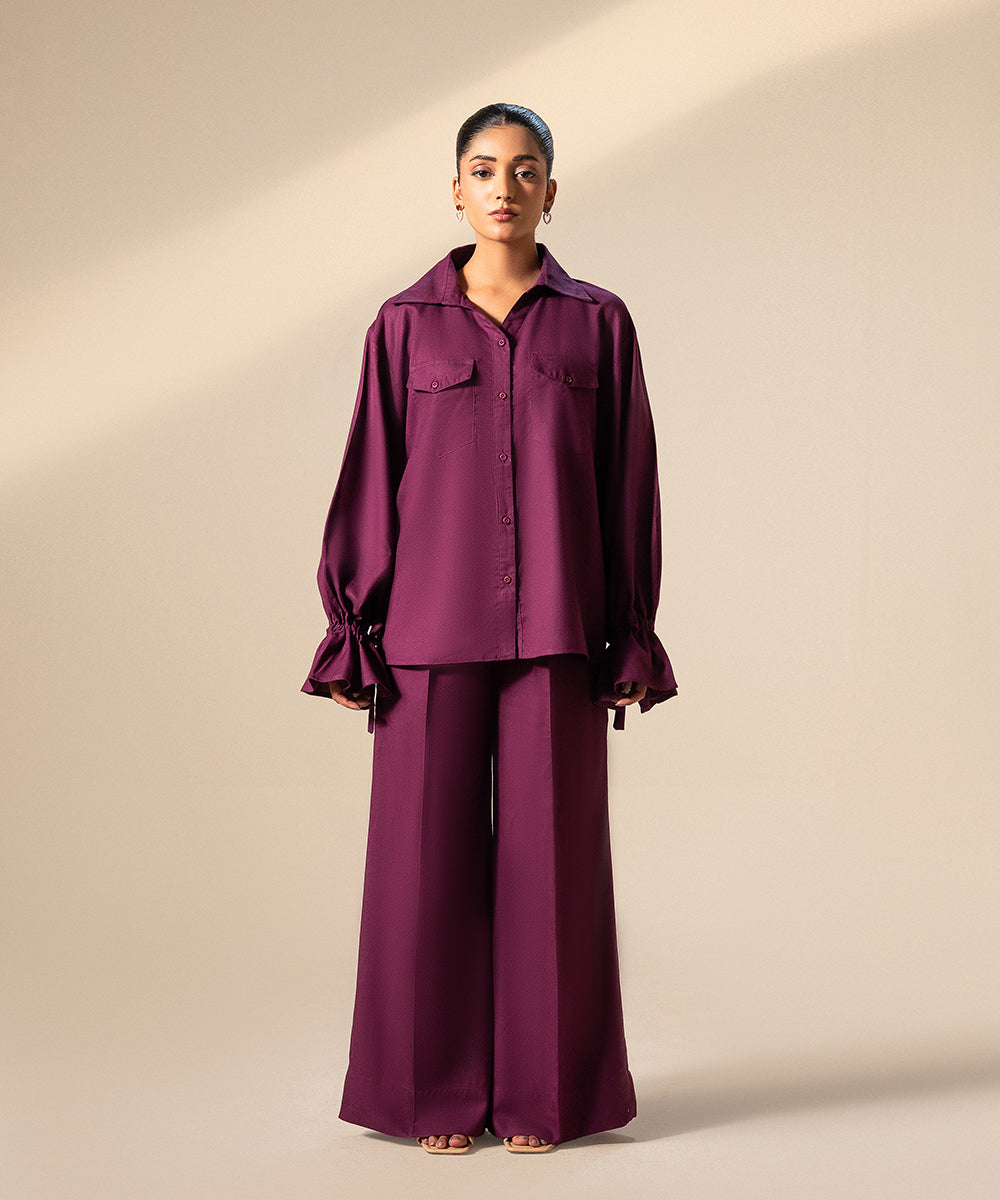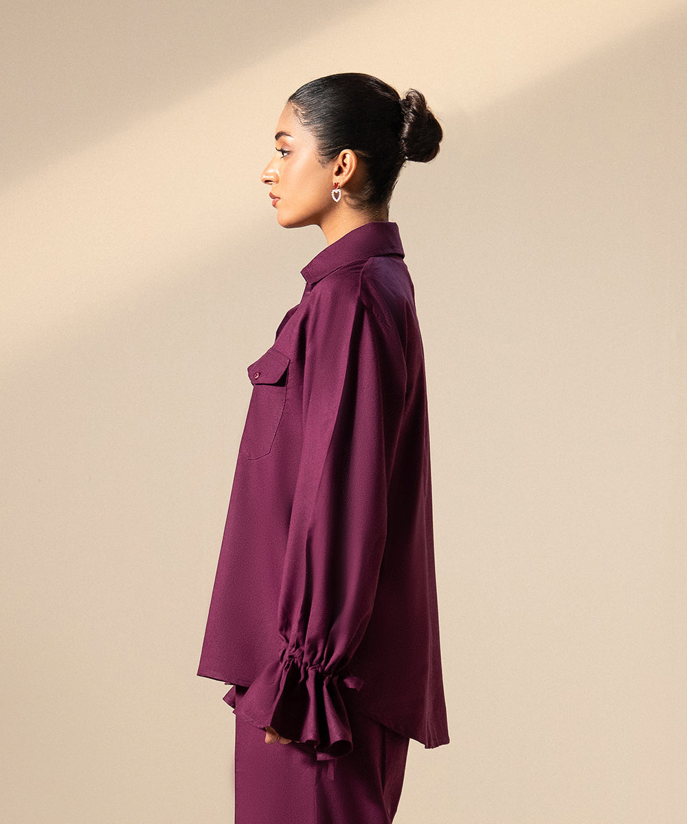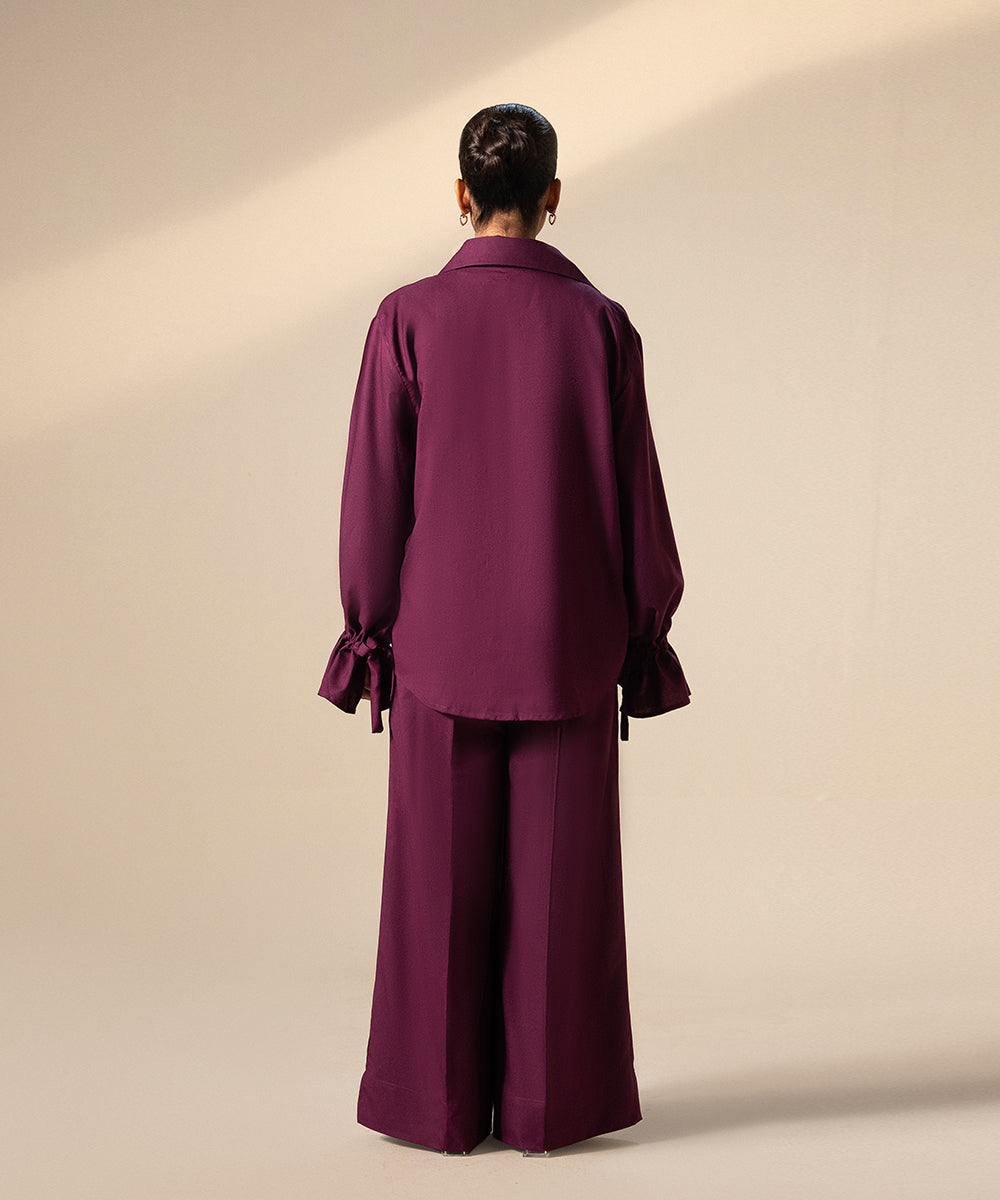 Design details: Crafted in silk cotton blend, this button down top has cinched sleeves with a chic tie detail.